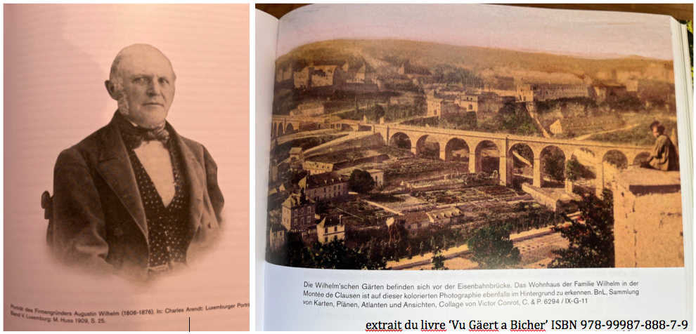 L'Établissement horticole Augustin Wilhelm (Wilhelm'schen Kunstgärtnerei-Anstalt) peut être considéré comme le berceau de l'horticulture au Luxembourg. Déjà vers 1839, plus de 200 variétés de roses étaient connues au Luxembourg. Beaucoup de ces roses, originaires de l'étranger, étaient cultivées dans les pépinières d'Augustin Wilhelm, dont le siège se trouvait au 'Clausener Bierg'. Les vastes terrains de l'entreprise horticole s'étendaient jusqu'aux plateaux de Fetschenhaff, Cents et Sandweiler, où principalement les arbres fruitiers et les rosiers étaient cultivés. Augustin Wilhelm, président de la Confrérie Saint-Fiacre de Luxembourg de 1873 à 1914, était président-fondateur de l'Harmonie de Clausen, commandant des sapeurs-pompiers de Clausen, membre fondateur de la 'Société d'Horticulture', ainsi que membre du Conseil Communal de la Ville de Luxembourg de 1845 à 1863. De son vivant déjà, ses enfants Auguste et Eugénie reprenaient le flambeau de l'entreprise, qui, entre-temps occupait plus de 100 ouvriers. L'établissement horticole Augustin Wilhelm était également un excellent lieu de formation pour apprendre le métier d'horticulteur.