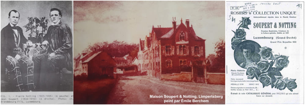 Deux adolescents, Jean Soupert de Dommeldange et Pierre Notting de Bollendorf ont appris le métier d'horticulteur-rosiériste auprès d'Augustin Wilhelm. Travailleurs et commerçants habiles, ils relevèrent le défi de créer en 1855 la première entreprise luxembourgeoise qui créa et exporta des roses.